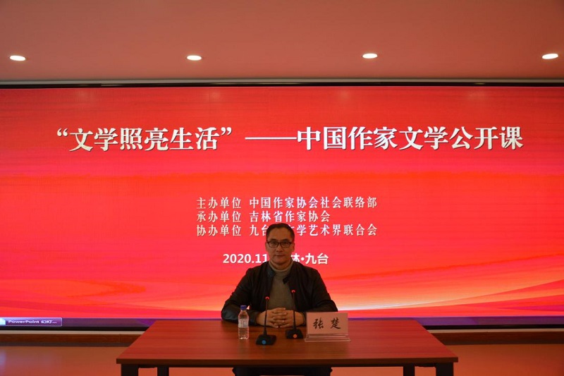 11月12日,由中國(guó)作家協(xié)會(huì)社會(huì)聯(lián)絡(luò)部主辦,吉林省作家協(xié)會(huì)承辦,東北師范大學(xué)文學(xué)院、九臺(tái)區(qū)文學(xué)藝術(shù)界聯(lián)合會(huì)協(xié)辦的“文學(xué)照亮生活”——中國(guó)作家“文學(xué)公開課”和文學(xué)閱讀分享活動(dòng)在吉林舉辦。活動(dòng)邀請(qǐng)第六屆魯迅文學(xué)獎(jiǎng)獲得者張楚、第七屆少數(shù)民族文學(xué)創(chuàng)作駿馬獎(jiǎng)獲得者韓靜慧為高校師生、基層作家和文學(xué)愛好者講授文學(xué)創(chuàng)作技巧經(jīng)驗(yàn),分享閱讀感悟與體會(huì)。