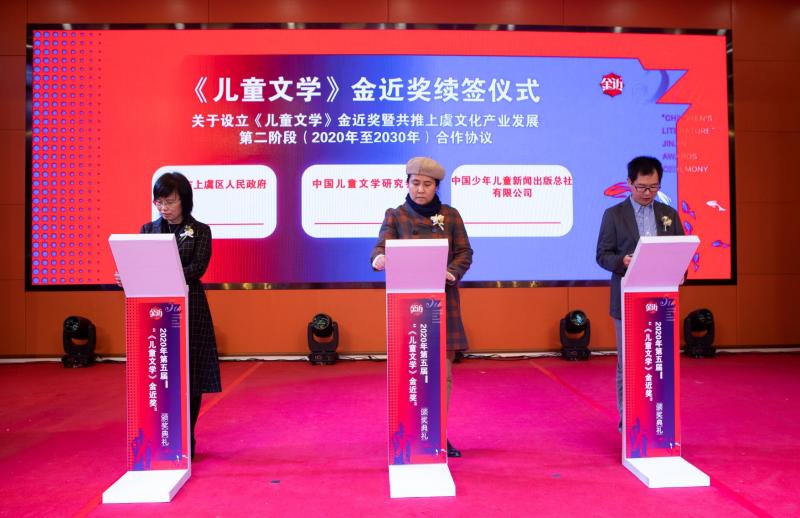 頒獎(jiǎng)活動(dòng)結(jié)束后,中少總社同上虞區(qū)人民政府和中國(guó)兒童文學(xué)研究會(huì)的三方代表共同簽署了《兒童文學(xué)》金近獎(jiǎng)第二階段的合作協(xié)議,并邀請(qǐng)中國(guó)兒童文學(xué)研究會(huì)作為指導(dǎo)單位,進(jìn)一步提升《兒童文學(xué)》金近獎(jiǎng)的規(guī)格和權(quán)威性,并對(duì)與《兒童文學(xué)》金近獎(jiǎng)相關(guān)的各項(xiàng)兒童文化和教育工作,提出指導(dǎo)性意見(jiàn)和建議,使其更加有效,更為完善。在下一個(gè)十年(2021年至2030年)里,中少總社將與上虞區(qū)精誠(chéng)協(xié)作,在中國(guó)兒童文學(xué)研究會(huì)的指導(dǎo)下,就文化產(chǎn)業(yè)、青少年思想品德教育等方面開(kāi)展更為深廣的合作。中少總社總經(jīng)理馬興民深切希望《兒童文學(xué)》雜志不辜負(fù)金近先生等前輩開(kāi)創(chuàng)的事業(yè),不辜負(fù)金近先生家鄉(xiāng)人民的厚愛(ài)和支持,為孩子提供高品質(zhì)的文化產(chǎn)品,使之成長(zhǎng)為合格的社會(huì)主義建設(shè)者和接班人。