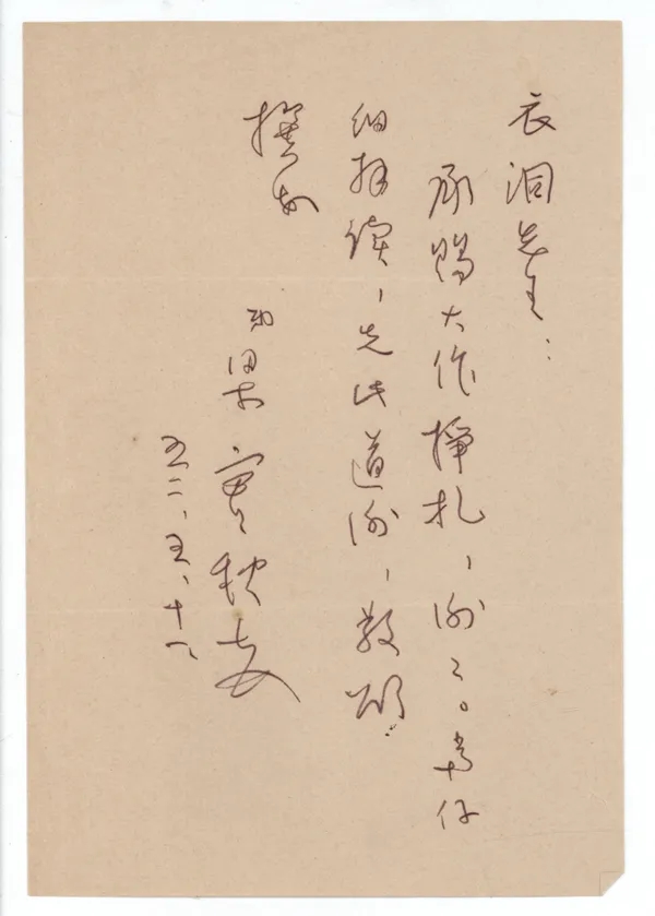 梁實秋致謝柏楊,云承賜大作《掙扎》,當(dāng)仔細拜讀。