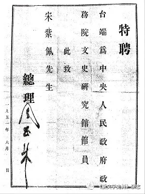 1925年,魯迅因支持女師大學(xué)生反帝愛國運(yùn)動(dòng)而遭到教育總長章士釗的非法免職。8月14日,魯迅的免職令發(fā)布以后,當(dāng)天去拜訪魯迅的友人多達(dá)23人,宋紫佩便在其中。不僅如此,宋紫佩又分別于16日、18日、20日、26日、28日五次前去拜訪。10月13日《魯迅日記》記載:“得平政院通知,即送紫佩并附信?!逼秸核蛠淼恼钦率酷摯疝q書副本,要求魯迅在5日內(nèi)答復(fù)。像這樣的案子,魯迅自然要托付給可信賴之人,顯然宋紫佩便是。宋紫佩擅長文案,京師圖書館分館又可查閱大量資料,且他幼時(shí)的老師壽洙鄰當(dāng)時(shí)正在北洋政府的平政院擔(dān)任法官。因此,魯迅請(qǐng)宋紫佩代寫互辯書提綱。三天后,宋紫佩寫出了控訴章士釗的互辯提綱的底稿交魯迅。自1925年8月14日免職令發(fā)布至1926年1月18日魯迅重回教育部,宋紫佩是魯迅所有友人中與之聯(lián)系最多的一位,在此期間,宋紫佩拜訪魯迅的次數(shù)多達(dá)15次(其中兩次訪而未遇),另有一封信致魯迅。