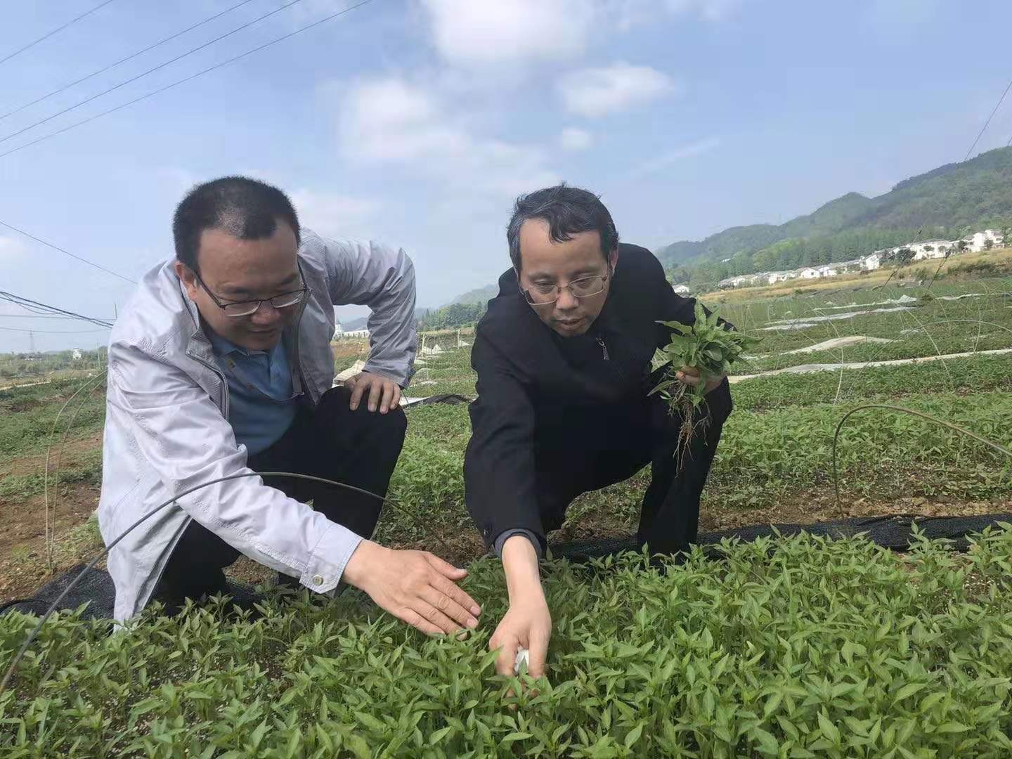 歐陽黔森在脫貧攻堅一線采訪(右)。受訪者供圖