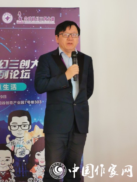 林天強(qiáng)圍繞“科幻季、數(shù)字經(jīng)濟(jì)與未來(lái)定義權(quán)”做了主題分享?!拔磥?lái)定義權(quán)”,就是刻畫、書寫和預(yù)測(cè)未來(lái)世界圖景、生活圖式和發(fā)明創(chuàng)造的權(quán)利與權(quán)力。它啟示和要求未來(lái)的權(quán)利/權(quán)力掌控者,基于當(dāng)下的科技發(fā)展方向,以建構(gòu)者的身份,著述科幻作品去想象和展望未來(lái)的圖景,并且通過(guò)社會(huì)各界的共同努力促使這種想象付諸現(xiàn)實(shí)。“未來(lái)定義權(quán)”是科幻文化生產(chǎn)力、傳播力與影響力的具體體現(xiàn),實(shí)現(xiàn)“未來(lái)定義權(quán)”的權(quán)力平等與權(quán)益保障則是指引科幻文化產(chǎn)業(yè)走向“幻想共同體”的必由之路。定義并非預(yù)測(cè),而是提供愿景,是方向;定義并非規(guī)定,而是約定俗成,是共識(shí);定義并非計(jì)劃,而是規(guī)劃引導(dǎo),是投入。