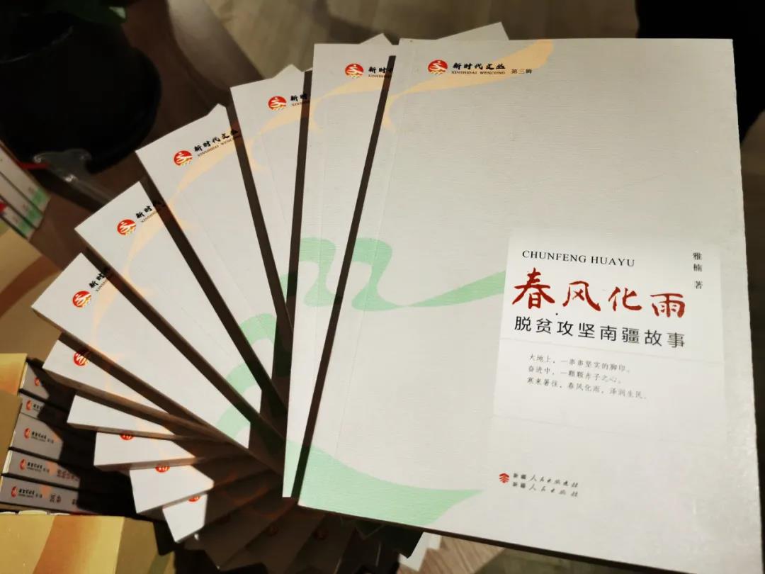在新疆維吾爾自治區(qū)黨委宣傳部的統(tǒng)一安排部署下,新疆維吾爾自治區(qū)文聯(lián),新疆作家協(xié)會(huì)、新疆人民出版總社聯(lián)合精心策劃,組織全疆優(yōu)秀作家,奔赴全疆各地,深入人民生活,用拳拳赤子之心、深厚的國(guó)家情懷、充沛激昂的感情、細(xì)致入微的筆觸,創(chuàng)作了脫貧攻堅(jiān)主題圖書《春風(fēng)化雨——脫貧攻堅(jiān)南疆故事》《筑夢(mèng)——脫貧攻堅(jiān)新疆紀(jì)事》《詩(shī)意棲居柯柯牙》《幸?;ㄩ_(kāi)塔里木》《博格達(dá)來(lái)信》五本圖書,從不同視角全面書寫了新疆脫貧攻堅(jiān)故事,反映了新疆各族人民群眾攜手奮斗奔小康的幸福生活。