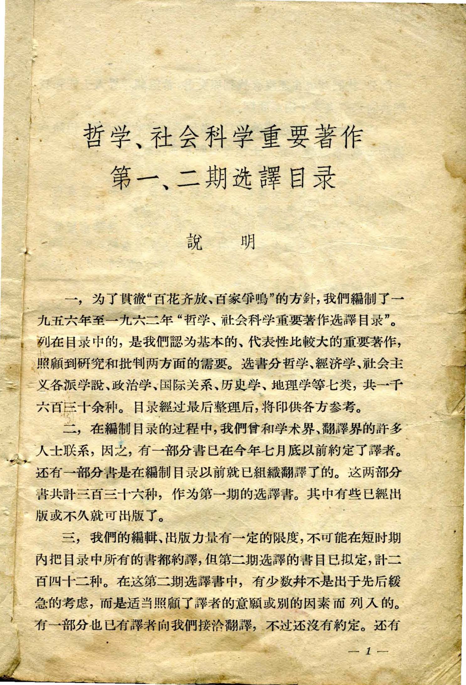 就此而言,我們不得不承認(rèn),1958年編制的、預(yù)計(jì)到1962年完成翻譯和出版的這項(xiàng)譯著規(guī)劃,是一場(chǎng)“大躍進(jìn)”,一項(xiàng)至今也談不上完全實(shí)現(xiàn)的“愿景”。