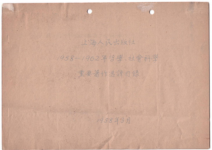 筆者統(tǒng)計(jì)了一下,“聯(lián)合版選譯目錄”共列出書(shū)目五百七十八種,其中上海人民出版社承擔(dān)五十五種,占到了將近十分之一;而筆者新近獲得的一份《上海人民出版社1958-1962年哲學(xué)、社會(huì)科學(xué)重要著作選譯目錄》(1958年3月,以下簡(jiǎn)稱(chēng)“滬版選譯目錄”)則表明,按照原計(jì)劃,上海人民出版社有意在這項(xiàng)工作中承擔(dān)更為重要的角色。