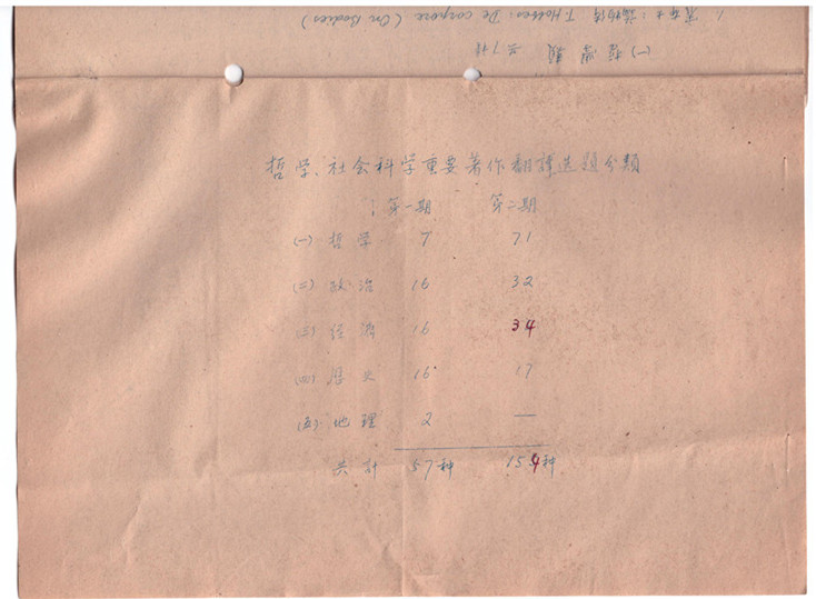 我們根據(jù)您社1957年5月編印的“哲學(xué)社會(huì)科學(xué)重要著作選譯目錄”選擇了第二期選題146個(gè),茲送上目錄一份,請(qǐng)核收。如有重復(fù),希望早日通知。另外,我們?cè)黾恿诉x題8種,列入名著選題,不知是否妥當(dāng),亦請(qǐng)考慮欣告。新增的8種如下:
