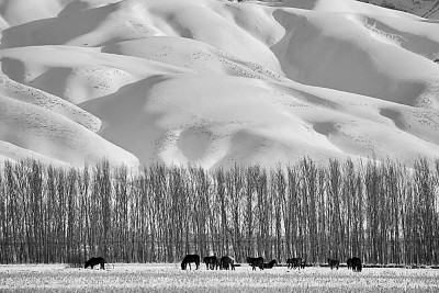 李娟的《冬牧場(chǎng)》是散文“非虛構(gòu)寫作”的代表作,作者深入新疆阿勒泰冬季牧場(chǎng),四個(gè)月、零距離記述冬牧場(chǎng)的點(diǎn)點(diǎn)滴滴。圖為冬牧場(chǎng)景觀。資料圖片