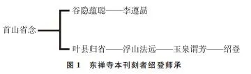 東禪寺本何以要用《天圣廣燈錄》中對南泉普愿、臨濟(jì)義玄的記載代替金藏本《景德傳燈錄》中的記載呢?通過考證發(fā)現(xiàn),東禪寺本《景德傳燈錄》的刊刻者紹登為臨濟(jì)宗僧人。其師承圖見圖1。