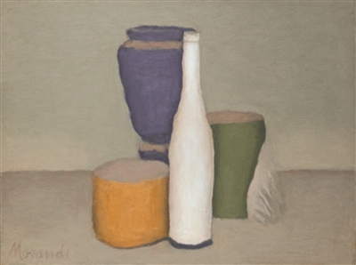 17世紀(jì)巴洛克時(shí)期的羅馬城被卡拉瓦喬凸顯光影戲劇性對(duì)比效果的明暗對(duì)照法所點(diǎn)燃,一批“卡拉瓦喬派”的畫家們就此在全歐如雨后春筍般誕生。待到洛可可時(shí)期,以塞巴斯蒂亞諾·里奇為首,被詹巴蒂斯塔·提埃波羅發(fā)揚(yáng)光大的“淺色調(diào)主義”又以淡雅輕盈的粉飾用色裝飾了遍布?xì)W洲大陸的室內(nèi)空間……或許受亞平寧半島似火的驕陽、湛藍(lán)的海面和如畫的風(fēng)景所熏陶,意大利人有著與生俱來的絕佳色彩感覺。對(duì)于用色他們是直接的、鮮艷的、毫無含蓄內(nèi)斂可言。由此看來,生于博洛尼亞的喬治奧·莫蘭迪顯得有些另類。