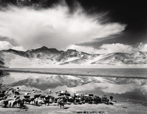一臺(tái)古老而又沉重的相機(jī),和由它帶來的幾分笨拙而又充滿儀式感的觀看世界的方式,正好對(duì)應(yīng)了馮建國在中國西部尋夢(mèng)的心境。如今,馮建國常教導(dǎo)學(xué)生,“你所向往的東西就純粹地去做”。或許是帕米爾高原千年冰山的呼喚,或許是塔克拉瑪干沙漠遠(yuǎn)古駝鈴的回響,還有青藏高原朝圣的腳步、誦經(jīng)的吟唱……印證了他對(duì)西部的無盡向往和與大畫幅黑白攝影的不解之緣。