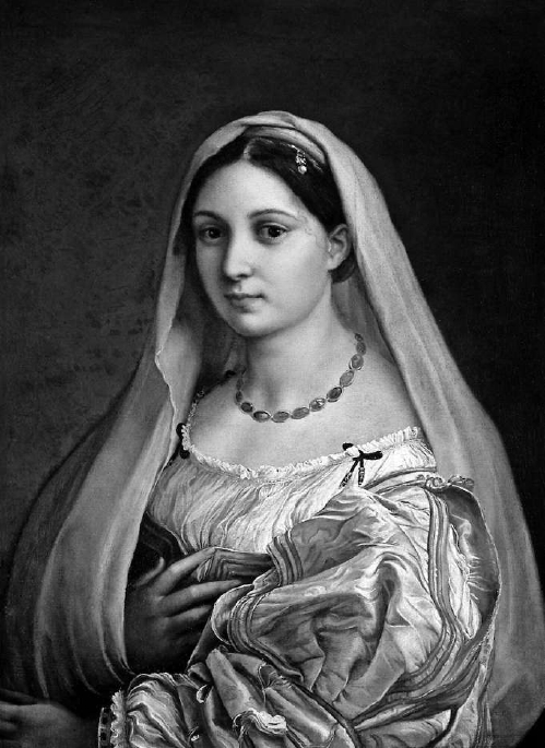 雖然拉斐爾將芙納瑞納視作自己的一生至愛,但造化弄人,拉斐爾終身未娶。拉斐爾與芙納瑞納相識相知多年,拉斐爾無可救藥地愛上了這個面包店老板的女兒,她是他關(guān)于美的靈感來源,《披紗巾的少女》便是拉斐爾30歲時為芙納瑞納畫的肖像作品,從美麗膚色到華貴服飾上的綿密衣褶都被細致入微地描繪出來,他畫筆下的芙納瑞納莞爾一笑,天真無邪,一雙烏黑杏眼露出無辜的眼神,緊盯著觀眾?;蛟S在拉斐爾心目中,芙納瑞納就是美的標準與化身,就連圣母也是芙納瑞納的樣子。