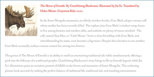 原創(chuàng)圖畫書《鄂溫克的駝鹿》榮獲2020年度美國伊索榮譽獎
