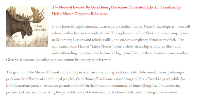 《鄂溫克的駝鹿》獲2020年度美國伊索榮譽獎