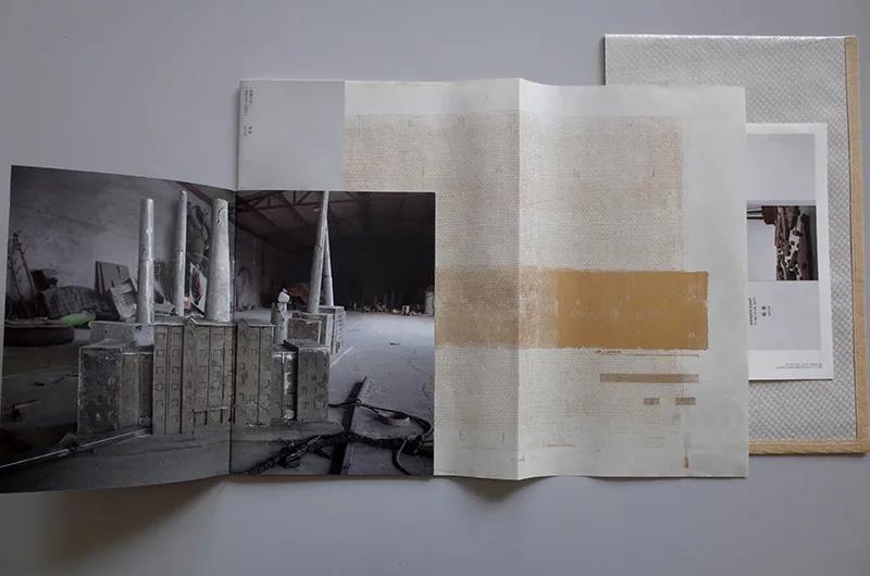 陸壘一直回避使用文字對他的創(chuàng)作加以描述,所以整本書只有一句話:我想寫“小說”,寫我的記憶和感知,以及一切荒唐的念頭。鼴書在這本冊子的制作中延續(xù)了對圖像敘事以及視覺語言的關(guān)注, 冊子由圖像集成,分為三個(gè)部分:主冊,是“小說”的主干,串聯(lián)起諸多意象的內(nèi)在的陳述,可以視其為“骨”;兩本輔冊,分別聚焦于作品存在的兩個(gè)物理場景:工廠與展廳,展廳無疑是呈現(xiàn)作品最肯定的面貌,但工廠則體現(xiàn)一個(gè)過程,存在大量更生動(dòng)的表情。