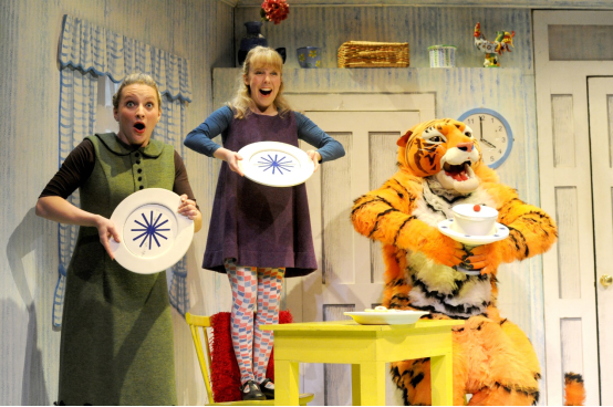 圖為根據(jù)同名繪本改編的、獲得英國戲劇奧利佛獎最佳家庭娛樂劇目提名的兒童繪本劇《老虎來喝下午茶》,圖片來源于劇照