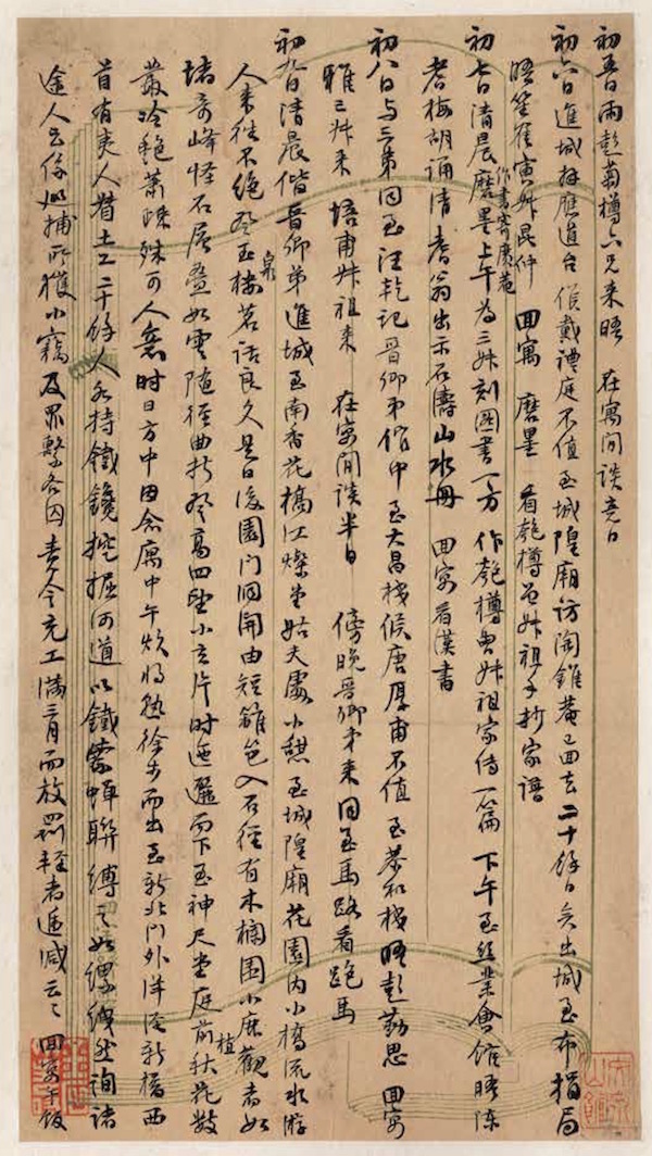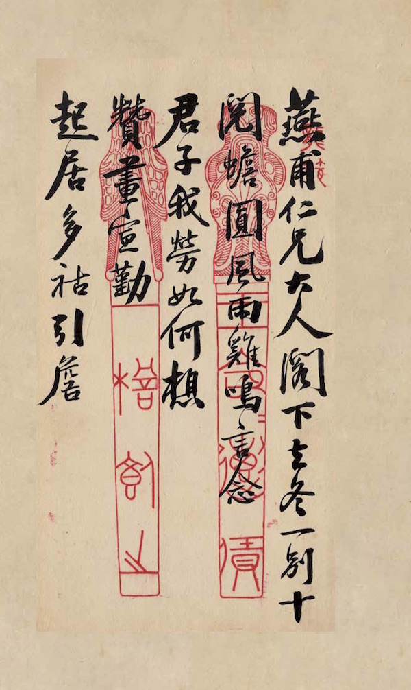 燕甫仁兄大人閣下:去冬一別十閱蟾圓,風(fēng)雨雞鳴,言念君子,我勞如何,想贊畫宣勤, 起居多祜,引詹