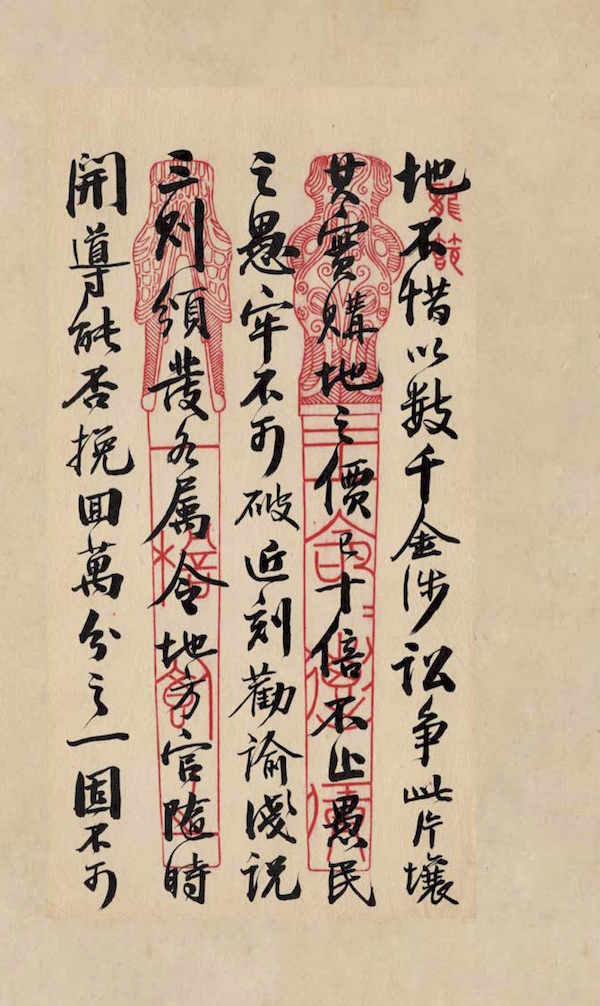 地,不惜以數(shù)千金涉訟爭此片壤, 其實(shí)購地之價(jià)已十倍不止,愚民之愚,牢不可破。近刻勸諭淺說三則,頒發(fā)各屬令,地方官隨時(shí) 開導(dǎo),能否挽回萬分之一固不可