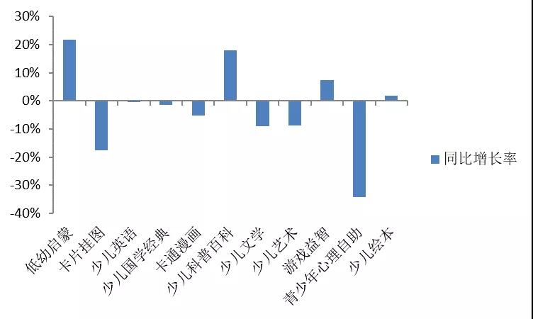 2020年少兒圖書各細(xì)分同比增長(zhǎng)率