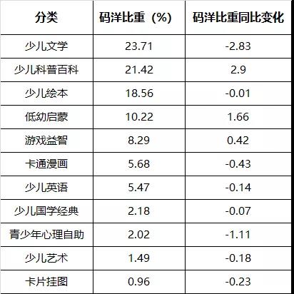 少兒圖書市場(chǎng)持續(xù)增長(zhǎng),同比增長(zhǎng)率為1.96%。