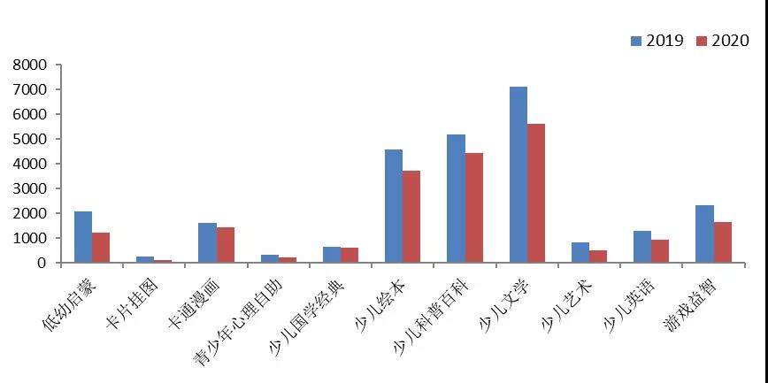 2019~2020年少兒細(xì)分市場(chǎng)新書品種數(shù)