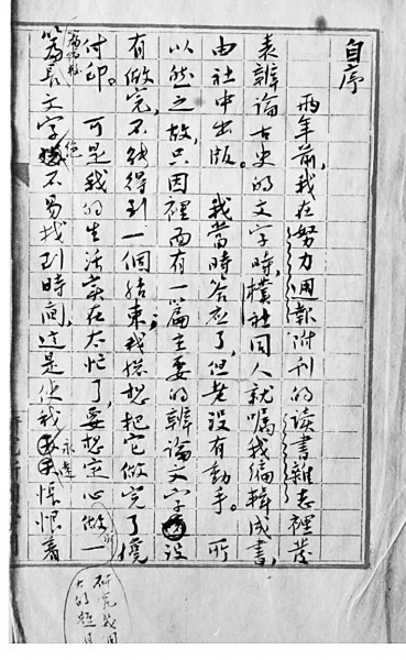 《古史辨》第一冊自序手稿