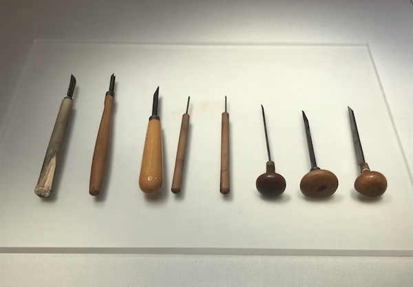 展覽現(xiàn)場,劉峴使用的木刻刀
