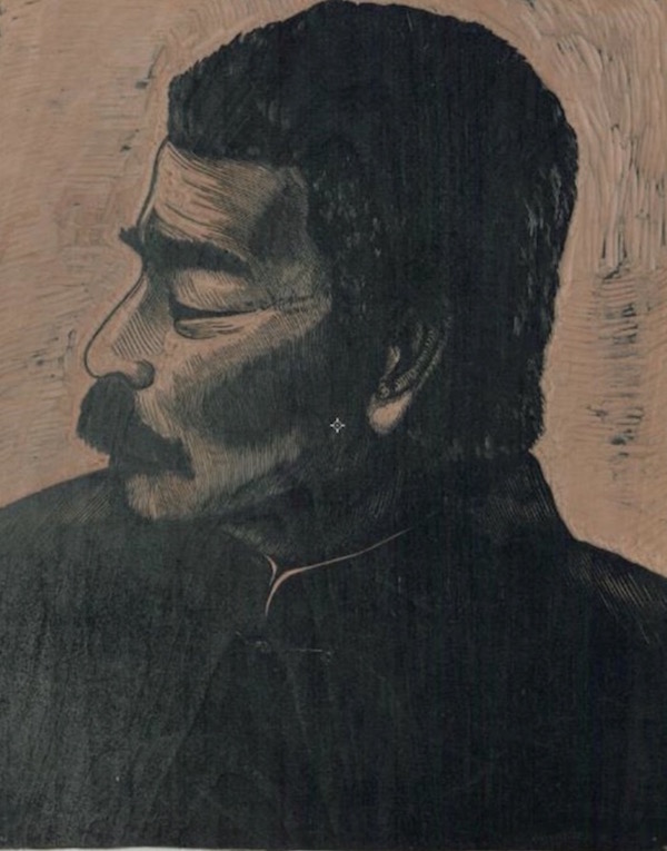 魯迅側(cè)影,劉峴木刻原版,34.3×27.7×1.8cm,1959年,劉峴女兒王人殷捐贈(zèng) 北京魯迅博物館藏