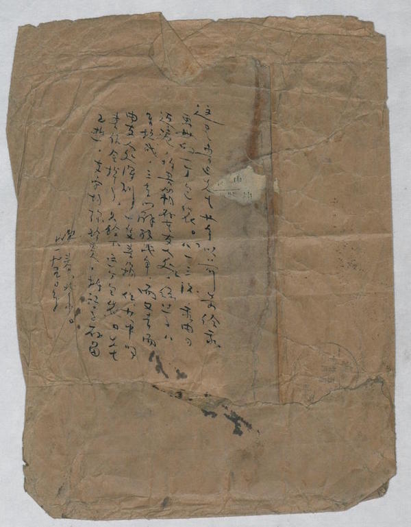這是魯迅先生廿年以前寄給我畫冊的一個(gè)包袋?!鞍艘蝗焙?,我由日返滬,將書箱存在友人處,經(jīng)過了八年抗戰(zhàn),三年的解放戰(zhàn)爭,而又幸而由友人處得到一支書箱。但其中的書信全掉了,只余下這個(gè)包袋。先生已逝,支字均彌珍貴,特記字存留。