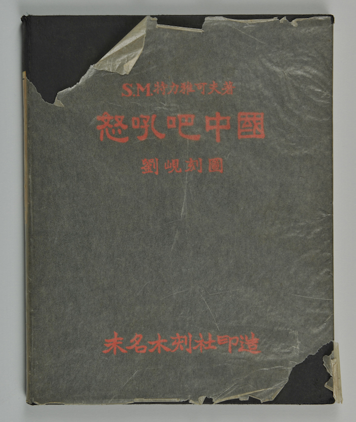 劉峴贈(zèng)魯迅《怒吼吧中國之圖》簽名本,S.M.特力雅可夫著 劉峴作木刻插圖,書中有木刻作品28幅,1935年北京未名木刻社印造 初版,1935年劉峴曾贈(zèng)送魯迅,書中題字“魯迅先生指正 峴敬贈(zèng)” ,魯迅藏書 許廣平捐贈(zèng),北京魯迅博物館藏