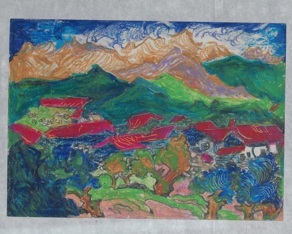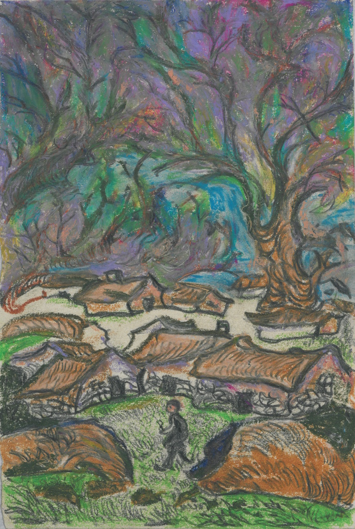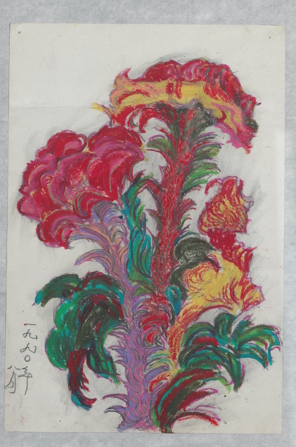 展廳的最后一部分呈現(xiàn)的是劉峴的藝術(shù)創(chuàng)作。包明吉表示,“這些作品大多是劉峴晚年因身體狀態(tài)導(dǎo)致無法手握刻刀后而改用油畫棒等其他手段所創(chuàng)作的作品,包括晚年為《野草》再做的插圖等?!?/p>