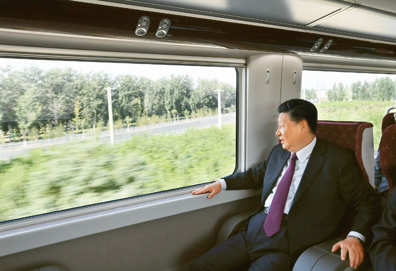 ↑2019年9月25日上午,北京大興國際機場投運儀式在北京舉行。中共中央總書記、國家主席、中央軍委主席習近平出席儀式,宣布機場正式投運并巡覽航站樓。這是習近平乘坐軌道列車前往北京大興國際機場。 新華社記者 謝環(huán)馳/攝