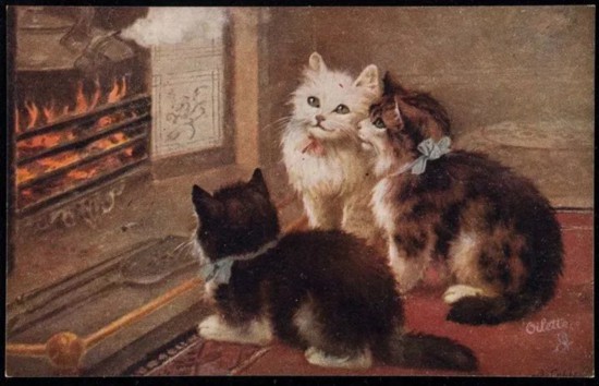 "Kittens by a fireplace", about 1903, chromolithograph on card stock, published by Raphael Tuck & Sons.ACCESSION NUMBER: 2014.3229