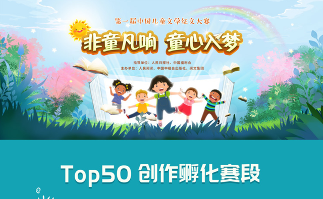 2月3日,“非童凡響 童心入夢(mèng)”首屆中國(guó)兒童文學(xué)征文大賽“Top 50創(chuàng)作孵化”賽段正式啟動(dòng)。入圍創(chuàng)作人及作品展示頁(yè)面已在人民日?qǐng)?bào)數(shù)字傳播、中國(guó)福利會(huì)、閱文集團(tuán)等平臺(tái)全面上線,創(chuàng)作人將獲得與導(dǎo)師團(tuán)組隊(duì)、共同完成和提升作品的機(jī)會(huì)。
