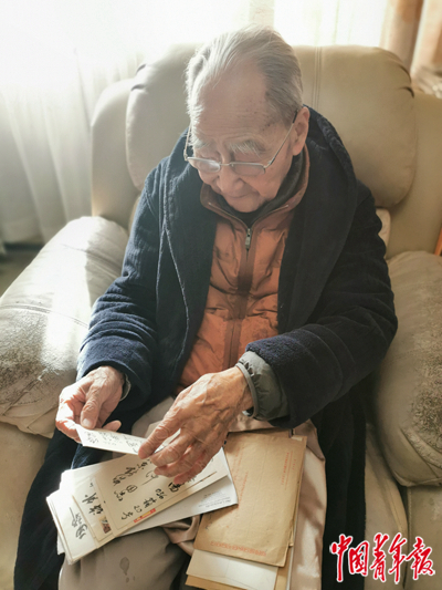許淵沖在翻看錢鐘書(shū)寫(xiě)給他的信。