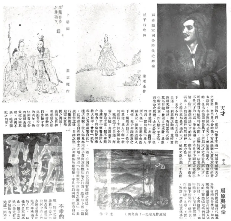 除了期刊連載外,《九歌圖》還以單幅人物畫的形式充當(dāng)報刊的不同組成部分。如1941年5月5日出版的第89期香港《大風(fēng)》報,封面畫即用了趙子昂《九歌圖》中的東皇太一畫像。再如孫作云的《九歌山鬼考》一文(《清華學(xué)報》1936年第11卷第4期),在第二部分“山鬼的姿容及其它”中,作者結(jié)合《山鬼》“若有人兮山之阿,被薜荔兮帶女羅,既含睇兮又宜笑,子慕予兮善窈窕。乘赤豹兮從文貍,辛夷車兮結(jié)桂旗,被石蘭兮帶杜衡,折芳馨兮遺所思”八句,以及王逸、聞一多的注解、詮釋,判定山鬼的姿容與神女相同,是很美麗的:“八句中或言體貌之容冶,或言被服之芬芳,或言車仗之盛飾,全是描寫一位佳人的。”為了配合此論,作者特意在此擇選了蕭云從與陳洪綬的《山鬼圖》作對比,并作評價曰:“只有趙孟頫、陳洪綬一流的笨伯,才會將一副猙獰的魔鬼面相繪入《九歌圖》里去。蕭云從則知道涵詠《山鬼》的文詞,所以不致鬧出那樣的笑話來?!睂O作云立足于《山鬼》的文意,充分肯定了蕭云從圖文相符的創(chuàng)作,以對原文摹畫的真實與否來判定《山鬼圖》的優(yōu)劣,并在此基礎(chǔ)上認(rèn)為陳洪綬脫離原文的想象為“笑話”。這篇文章是民國間報刊所登載《九歌》研究中,首次將圖像引入學(xué)術(shù)論文中并作相應(yīng)分析的案例,可見在當(dāng)時前賢學(xué)者已有了圖像、文物與文本研究相結(jié)合的現(xiàn)代學(xué)術(shù)意識。