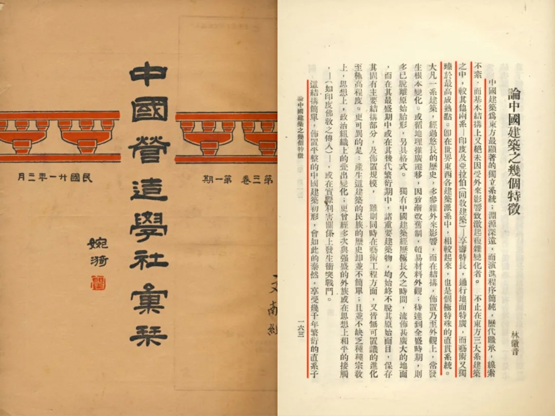 1932年林徽因在《中國營造學社匯刊》第三卷第一期發(fā)表《論中國建筑之幾個特征》