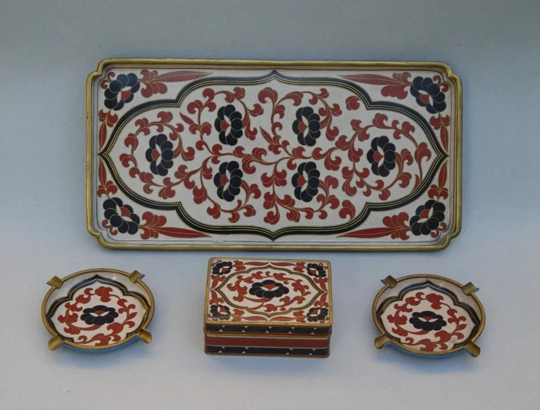 林徽因參與革新中國清代的景泰藍工藝,她輔導當時剛歸國的常沙娜,利用敦煌紋飾設(shè)計的一套煙具,如此精美。