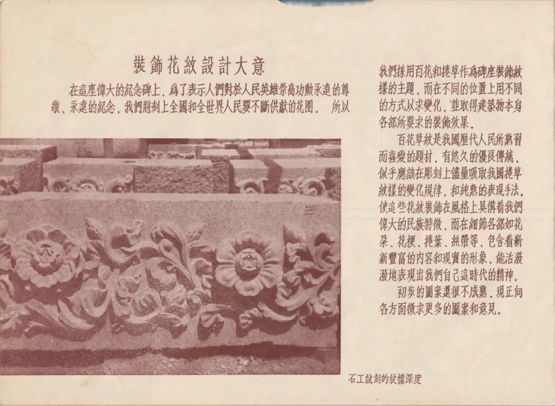 當時紀念碑工地現(xiàn)場,有紋飾試刻的小樣