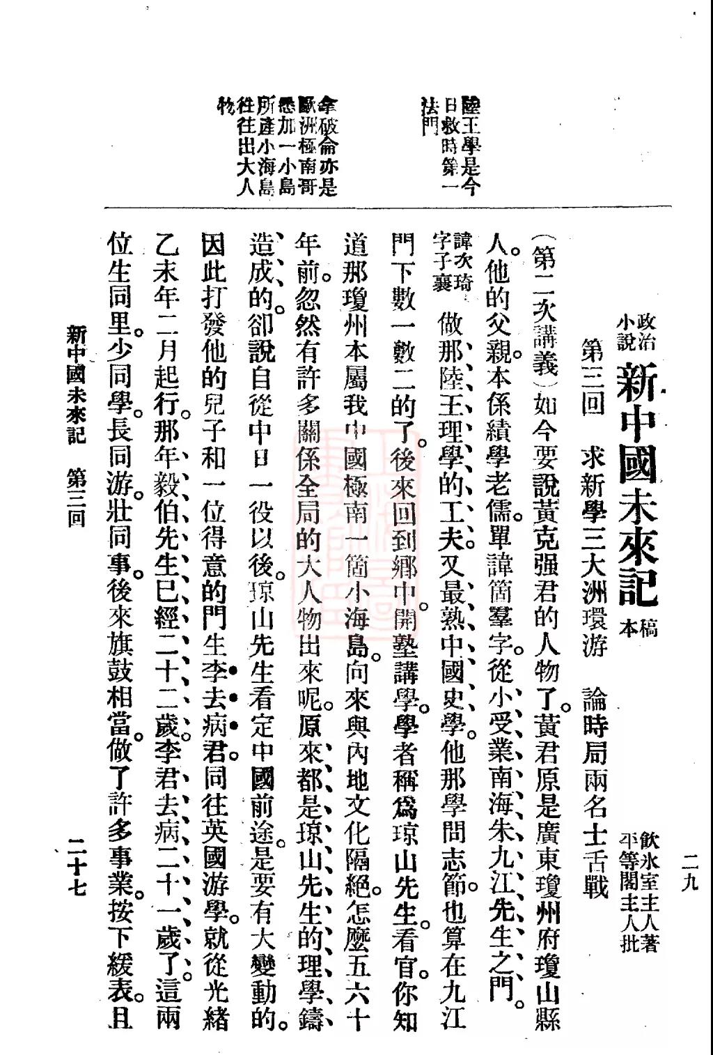 梁?jiǎn)⒊缎轮袊?guó)未來(lái)記》連載于《新小說(shuō)》