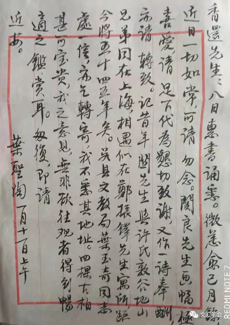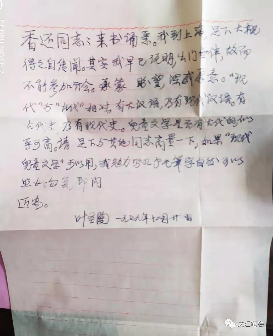 香還同志:來書誦悉。我到上海,足下大概得之自傳聞。其實我早已說明,出門無伴,故而不能參加開會。承蒙盼望,深感厚意。“現(xiàn)代”與“古代”相對。有古漢語,乃有現(xiàn)代漢語。有古代史,乃有現(xiàn)代史。兒童文學是否有古代的,似乎可商。請足下與其他同志商量一下。如果“現(xiàn)代兒童文學”可以用,我勉力寫幾個毛筆字自然可以照辦。匆復,即問