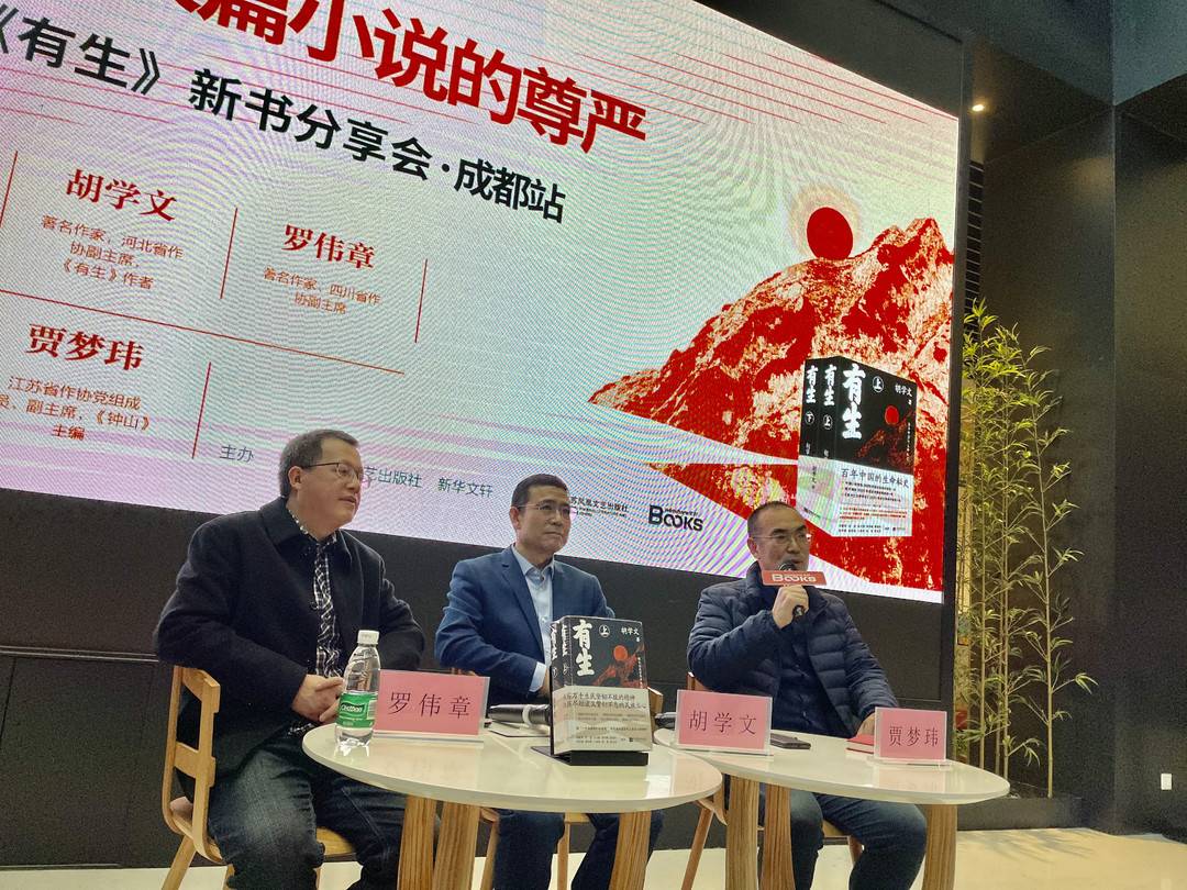 在一個(gè)短視頻的快資訊時(shí)代,我們還需不需要長篇小說?長篇小說有著怎樣的存在“合法性”?3月7日下午,一場名為“《有生》與長篇小說的尊嚴(yán)”的讀者分享會(huì),在文軒BOOKS書店舉行?!队猩返淖髡摺Ⅳ斞肝膶W(xué)獎(jiǎng)獲得者胡學(xué)文,與文學(xué)雜志《鐘山》雜志主編賈夢瑋,小說家羅偉章一起,探討了這部小說的創(chuàng)作、鑒賞以及長篇小說這門文學(xué)體裁的當(dāng)下命運(yùn)。這部帶有家族史詩氣質(zhì)的小說主角,是一位歷經(jīng)苦難風(fēng)雨而變得睿智堅(jiān)韌的中國農(nóng)村女性,分享會(huì)恰逢三八國際婦女節(jié)來臨前夕,也格外應(yīng)景。胡學(xué)文說,自己在寫作中偏愛女性角色,“女性相比男性,更柔弱,感知力更強(qiáng),是人性和世界最敏感的探測器。”