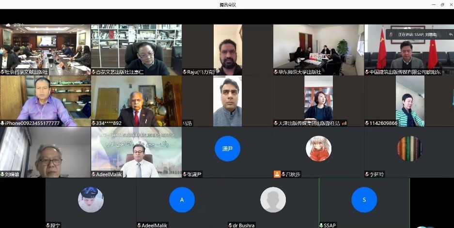 隨后,社科文獻(xiàn)出版社國(guó)際出版分社社長(zhǎng)李延玲、百花文藝出版社總編輯汪惠仁、中國(guó)建筑出版?zhèn)髅接邢薰靖笨偨?jīng)理歐陽(yáng)東、華東師范大學(xué)出版社副社長(zhǎng)龔海燕分別向大家介紹了各社烏爾都語(yǔ)圖書的出版情況,并在線舉行多種圖書的簽約儀式。其中,社會(huì)科學(xué)文獻(xiàn)出版社的《中國(guó)崛起與亞洲地區(qū)市場(chǎng)建構(gòu)》烏爾都語(yǔ)版,百花文藝出版社的《海邊春秋》烏爾都語(yǔ)版,華東師范大學(xué)出版社的《華東師大版一課一練 數(shù)學(xué)》烏爾都語(yǔ)、英語(yǔ)版,中國(guó)建筑出版社的《文人園林建筑》烏爾都語(yǔ)版等多本圖書均與巴基斯坦出版社及譯者實(shí)現(xiàn)了簽約。
