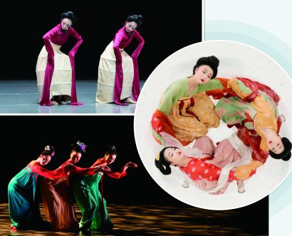 “小垂手后柳無力,斜曳裾時云欲生?!薄澳韹刹灰?,往往度繁節(jié)?!薄谤Z黃剪出小花鈿,綴上芳枝色轉(zhuǎn)鮮。”詩詞中美輪美奐的場景,如今重現(xiàn)在舞臺。剛剛過去的周末,舞蹈劇場《俑Ⅲ》在上海國際舞蹈中心大劇場上演,靈感來自漢唐舞俑。以古畫意象為主體的《俑Ⅲ》各段落獨立成章,由《簪花》《唐樂宮圖》《胡服美人圖》《蹲蹲舞我》《塞外》《穿深衣的貴族》《小踏歌》《行吟圖》八支舞蹈組成。
