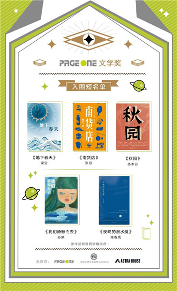 今年,一個(gè)致力于挖掘優(yōu)秀原創(chuàng)作品,鼓勵(lì)年輕創(chuàng)作者和文學(xué)新人的全新文學(xué)獎(jiǎng)——PAGEONE文學(xué)獎(jiǎng)由PAGEONE書店、清華大學(xué)文學(xué)創(chuàng)作與研究中心與國際出版品牌Astra House共同發(fā)起。3月17日,首屆PAGEONE文學(xué)獎(jiǎng)公布入圍短名單,榜上有名的作品有:梁空的《地下春天》、張忌的《南貨店》、楊本芬的《秋園》、孫頻的《我們騎鯨而去》以及陳春成的《夜晚的潛水艇》。