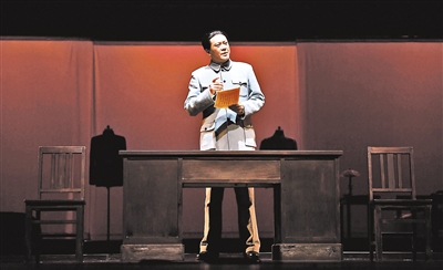 “在舞臺(tái)上形似是第一步,要讓觀眾相信,但僅僅靠形似只能吸引觀眾五分鐘,之后就要靠神似,神似需要的是對(duì)人物思想的理解。通過(guò)演員之口說(shuō)出的語(yǔ)言,傳遞的是領(lǐng)袖的思想?!卑缪菝珴蓶|的王斑表示。此前,他曾在影視劇《毛澤東三兄弟》中扮演青年毛澤東,“此番能夠出演盛年時(shí)期的毛澤東,對(duì)自己而言是光榮的任務(wù)。劇中要展現(xiàn)一個(gè)立體的毛主席,除了他的行為特點(diǎn),生活習(xí)慣,更要展現(xiàn)的是他的雄才偉略,他的鐵血柔情,他的自信幽默……這些都要通過(guò)演員的反復(fù)體悟打磨之后自然流露。”在王斑看來(lái),這樣的自然流露離不開(kāi)背后的學(xué)習(xí)和理解,“我們作為創(chuàng)作者,自己要先學(xué)黨史、懂黨史,才能在舞臺(tái)上給觀眾講黨史?!?/p>