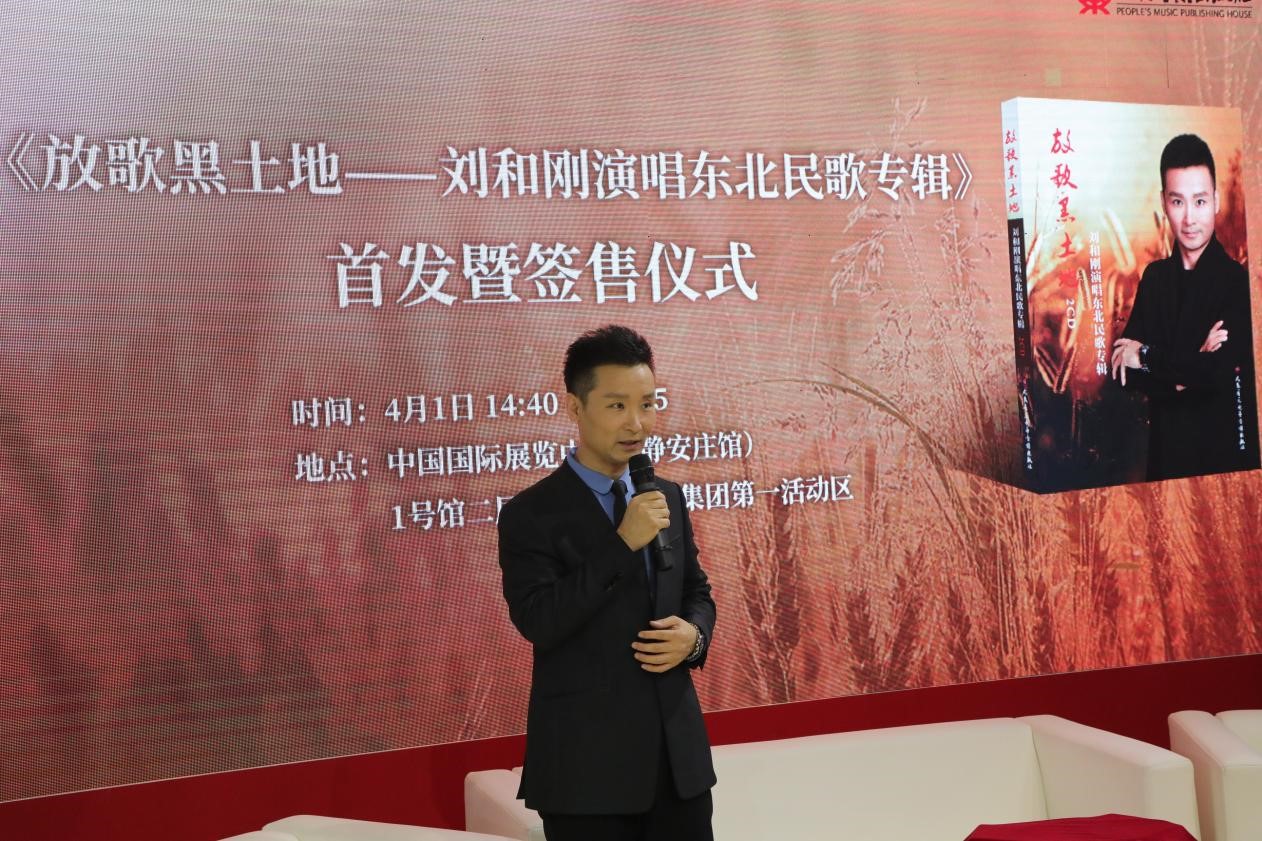 4月1日,由人民音樂出版社主辦的《放歌黑土地——劉和剛演唱東北民歌專輯》首發(fā)暨簽售儀式在中國國際會展中心舉行。中國出版集團有限公司黨組成員、副總經(jīng)理陳永剛,男高音歌唱家、國家一級演員劉和剛,人民音樂出版社副總編輯杜永壽,人民音樂出版社副總經(jīng)理魏振華出席活動。