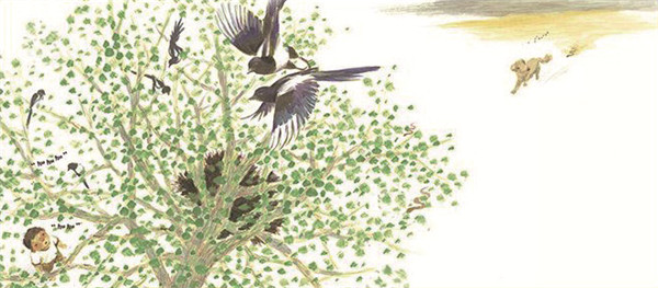 不得不說,在我們的故事型原創(chuàng)繪本中,存在著不少不會(huì)講有結(jié)構(gòu)的故事的作品。故事講不好,“小”繪本立不起來,更無法“大”起來。在這個(gè)重要方面,《喜鵲窩》給我們提供了一個(gè)難能可貴的經(jīng)驗(yàn)。