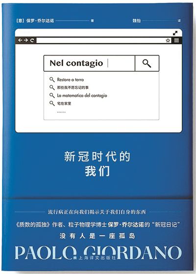 從《質(zhì)數(shù)的孤獨(dú)》到《新冠時(shí)代的我們》,也就過去了十年,喬爾達(dá)諾卻不得不暫時(shí)從“我”的世界里掙脫出來了。雖然這本新書的意大利原文Nel contagio直譯過來是“處在傳染之中”的意思,但顯然,敏銳的譯者注意到這個(gè)短語所指向的那個(gè)隱而未見的對(duì)象,是“我們”,或者說是以我們每個(gè)人為單位的這個(gè)社會(huì)共同體?!白鳛閱虪栠_(dá)諾的我”選擇了“處在新冠時(shí)代的我們”這樣一個(gè)寫作對(duì)象,作家由此獲得了一個(gè)從集體性的他者出發(fā)反觀自我的全新視角。