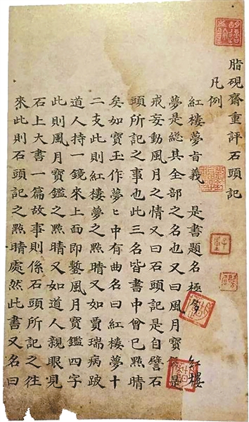 去年(1927)我從海外歸來,便接著一封信,說有一部抄本《脂硯齋重評石頭記》愿讓給我。我以為“重評”的《石頭記》大概是沒有價值的,所以當(dāng)時竟沒有回信。不久新月書店的廣告出來了,藏書的人把此書送到店里來,轉(zhuǎn)交給我看。我看了一遍,深信此本是海內(nèi)最古的《石頭記》抄本,遂出重價把此書買了。