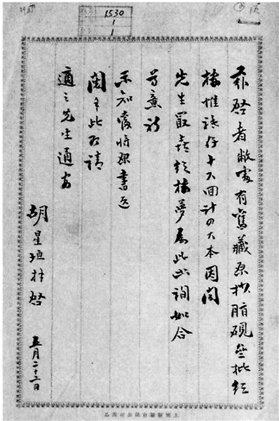 茲啟者:敝處有舊藏原抄《脂硯齋批紅樓》,惟祇存十六回,計四大本。因聞先生最喜《紅樓夢》,為此函詢,如合尊意,祈示知,當(dāng)將原書送閱。手此。即請